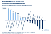 Die Auswirkungen der Vogelgrippe und der Karikaturenstreit haben insbesondere der Türkei in der vergangenen Saison einen spürbaren Einbruch beschert – von 5,1 Prozent aller deutschen Urlaubsreisenden im Jahr 2005 auf 3,7 Prozent im vergangenen Jahr. Dabei wurde die Türkei sogar von Griechenland (5,2%) überholt. So gesehen gilt die Türkei als der große Verlierer der Saison 2006. Von den Turbulenzen und Gästeverlusten waren auch Marokko, Tunesien und Ägypten betroffen.