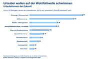 Mit der Gesundheitsorientierung im Urlaub unmittelbar verbunden ist das Interesse am Berg- und Wandertourismus (38%) sowie Fahrradtourismus (30%). Im Urlaub der Zukunft spiegelt sich eine Vielfalt von Reiseformen wider, wie sie in früheren Jahrzehnten kaum möglich war. Einzelne Bevölkerungsgruppen setzen dabei aber ganz unterschiedliche Schwerpunkte:
