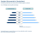 Ganz persönlich sehnen sich die Deutschen 2008 nach Vertrauen, Geborgenheit und menschlicher Wärme. In der öffentlichen Wahrnehmung aber sehen sie sich immer mehr mit Vernachlässigung, Verwahrlosung und Versäumnissen in der Kindererziehung konfrontiert. Nur auf den ersten Blick können überforderte Mütter oder erziehungsunfähige Eltern als ein Problem von Unterschichten erklärt werden. In Wirklichkeit spiegelt sich hier die Hilflosigkeit einer Gesellschaft wider, in der soziale Schichten und ganze Stadtteile auseinander zu driften drohen und immer mehr neben- als miteinander wohnen und leben. Der Anteil der Bevölkerung, der „Kinderfeindlichkeit als größte Zukunftssorge“ bezeichnet, hat sich in den letzten acht Jahren fast verdoppelt (1999: 22% – 2003: 33% – 2007: 40%). Noch dramatischer wird die allgemeine Ausbreitung von „sozialer Kälte“ in Deutschland eingeschätzt (1999: 42% – 2003: 52% – 2007: 58%). Dies geht aus Repräsentativumfragen hervor, in denen die BAT Stiftung für Zukunftsfragen (ehemals BAT Freizeit-Forschungsinstitut) jeweils 2.000 Personen ab 14 Jahren in Deutschland nach ihren Zukunftssorgen befragt hat.