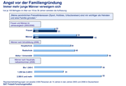 „Many young men have not yet found their personal life concept in the 21st century,“ says Prof Dr Horst W. Opaschowski, Scientific Director of the Institute. „They have largely lost their role as head of the family. And they are less and less needed as the main breadwinner. In contrast, more and more women are successfully ‚standing their ground’ - both professionally and privately. As a result, young men are withdrawing into their own world of interests and exercising their right to refuse to procreate.“ Four out of ten young men aged 18 to 39 are of the opinion: „My personal leisure interests (sport, hobbies, holidays) are more important to me than getting married and starting a family.“ The proportion of men refusing to start a family has increased significantly in the last three years from 34 to 43 per cent and is now almost twice as high as among young women (2003: 22% - 2006: 23%). The demographic consequences are not long in coming: one third of the population remains childless for life.