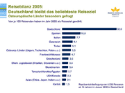 Die Studie enthält neben den aktuellen Analysen und Prognosen zum Reiseverhalten 2005/2006 auch Darstellungen zu den Schwerpunktthemen: Auswirkungen der Fußball-WM; Qualitätsranking der Ferienregionen; Seniorenreisen.